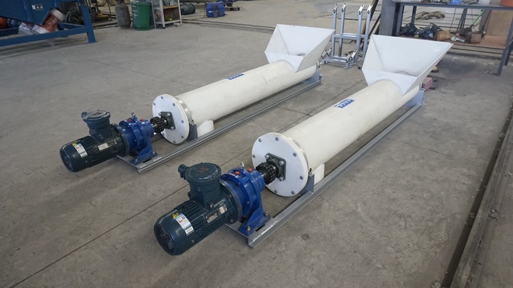 When the drive unit rotates the screw shaft, the barium sulfate particles, due to their own gravity and friction with the trough wall, do not rotate synchronously with the screw shaft but slide axially, forming a continuous material flow. This process is similar to the translational motion of a nut on a screw. Once the nut is clamped and fixed, the rotation of the screw pushes the nut in a straight line, while the barium sulfate particles are directionally conveyed through the rotation of the helical blades.