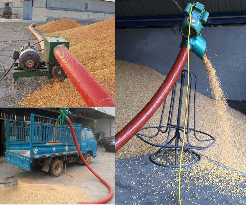 Commonly used models of Corn Grain Suction Machine are 100mm, 120mm, 160mm, and 180mm in diameter, and the output can reach 3 to 30 tons depending on the model. The vertical lifting height can reach 6 meters, and the length of the straw can reach more than 10 meters.