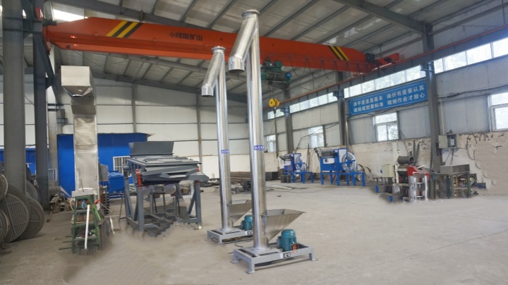 Edible Salt Packaging Workshops: Used for high-level feeding before packaging, vertically lifting edible salt from storage silos to the packaging machine inlet, ensuring precise quantity control, preventing dust leakage, and meeting food packaging hygiene standards.