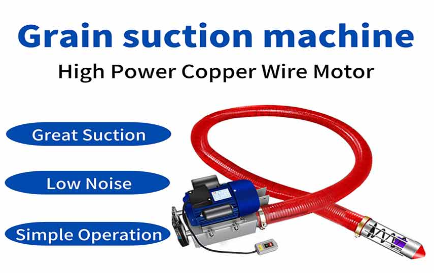Suction and discharge device: Includes a conical suction port and discharge port. The suction port is designed to reach deep into the grain pile, reducing suction resistance; the discharge port can connect to a flexible hose or directly connect to the grain storage container to prevent grain spillage.