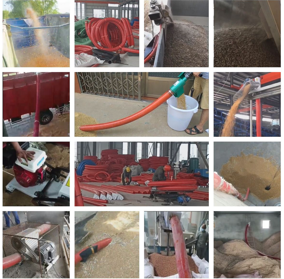 Application scenarios for the Grain Pumping Portable Grain Suction Auger Screw Conveyor Small include: emptying grain storage in households, replenishing rice containers, bagging grain after drying in the fields for small farmers, and cleaning up leftover grain in corners of grain warehouses. It is suitable for transporting various types of granular grains.