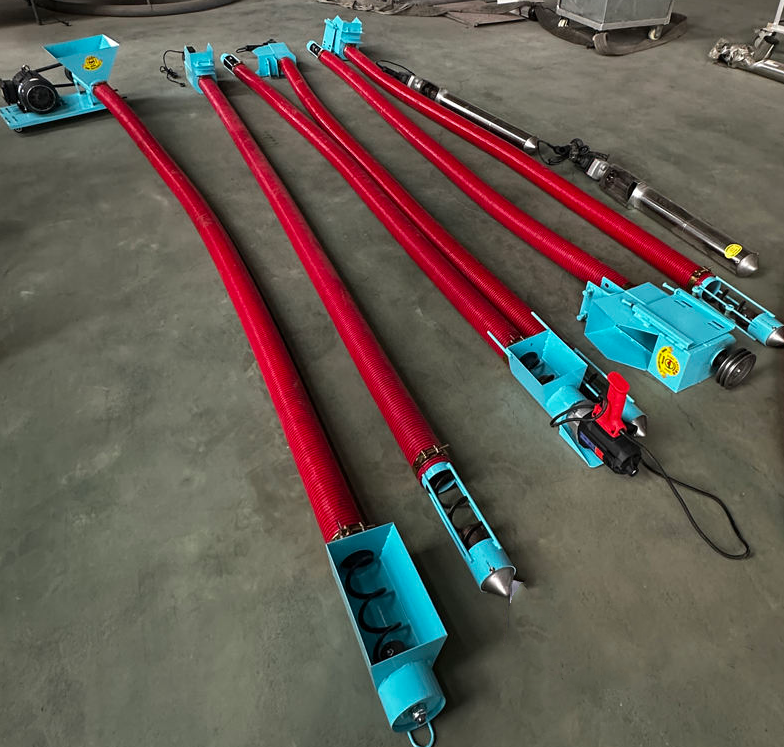 Hose Screw Conveyor: Utilizing a high-strength rubber hose conveying channel, it possesses tensile and wear-resistant properties. The standard inner diameter is 100mm, but can be customized up to 150mm. Its design emphasizes lightweight flexibility, with the entire machine weighing approximately 15-20kg. Equipped with a foldable support frame and casters, it supports single-person handling. The hose can be bent over 90°, adapting to narrow spaces such as grain silo corners and truck beds.