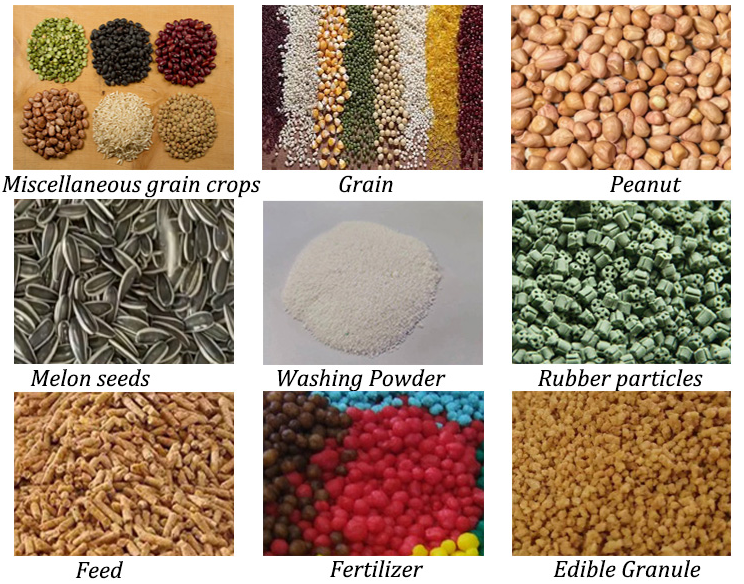 Granular materials: grains, seeds, plastic particles, small nuts, etc. (particle size ≤10mm).
