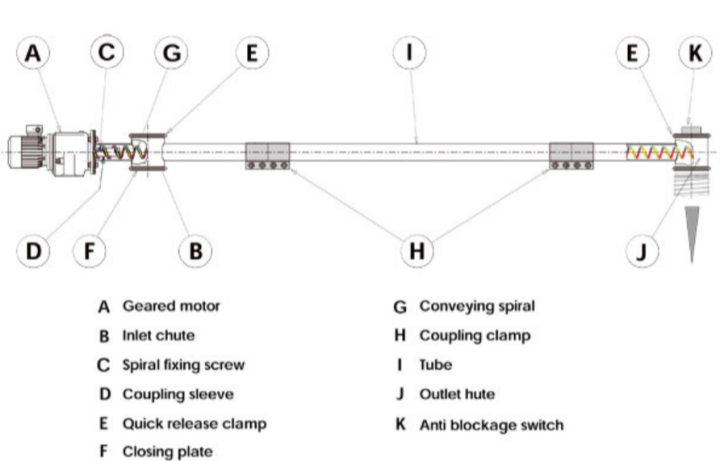 Wear-resistant and durable: Different materials are available for the pipe body and blades, offering wear resistance and corrosion resistance, suitable for the continuous conveying of kaolin micro-particles.