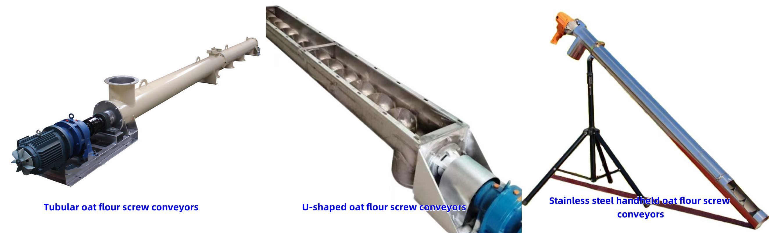 Depending on their structure and application, Oat Flour Screw Conveyors are primarily categorized into three types: tubular, U-shaped, and stainless steel handheld. Each type is designed to address the fine, dusty characteristics of oat flour.