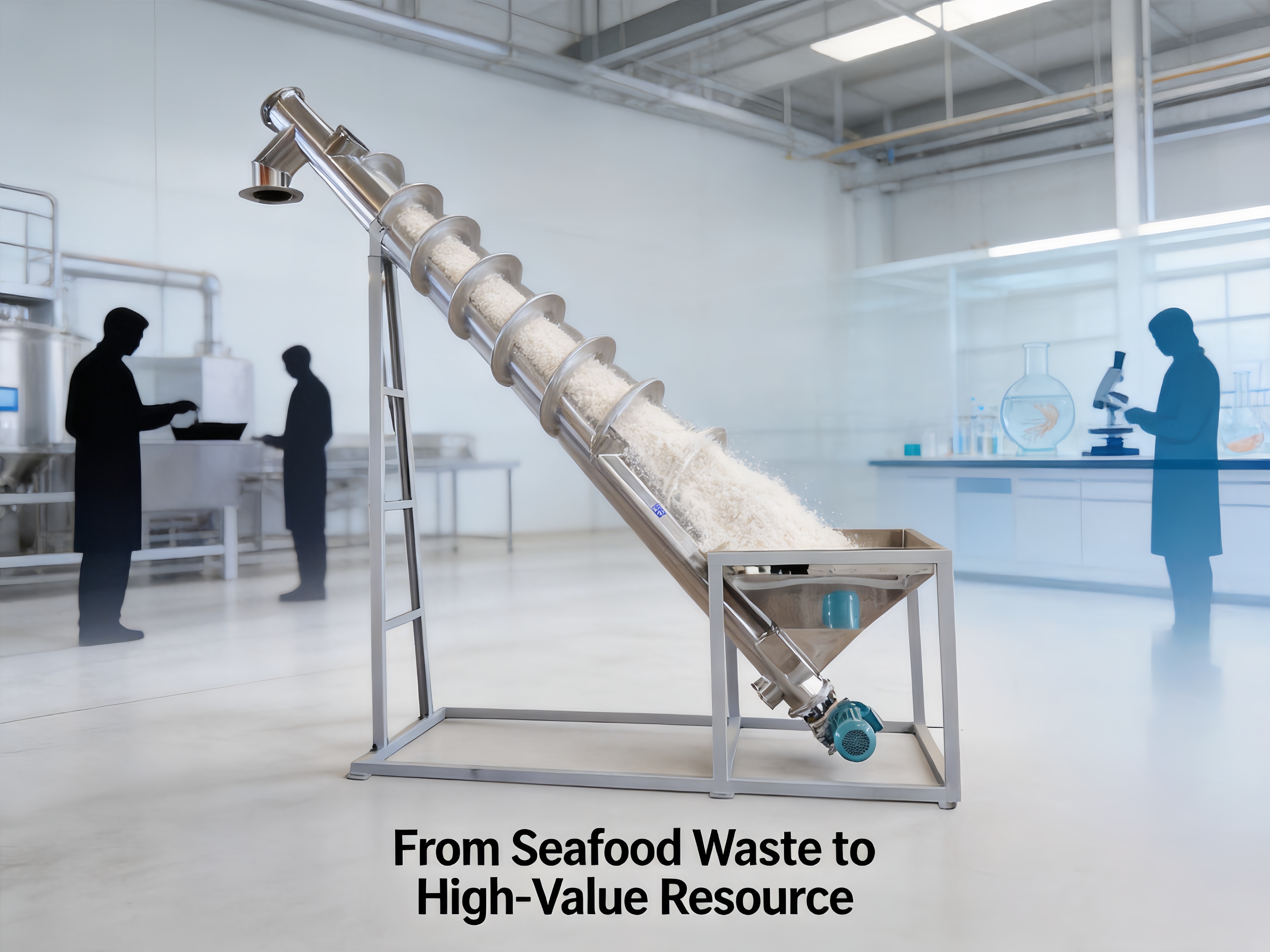 Shrimp Shell Powder Screw Conveyor is a conveyor system for transporting and lifting shrimp shell powder, shrimp shell scraps, and dried and crushed shrimp shells. It addresses industry pain points in seafood processing, such as difficult handling, high loss due to spillage, and low efficiency of manual handling of shrimp shell materials. Custom-designed for the characteristics of shrimp shell powder—lightweight, easily adhering, and containing small amounts of moisture and fibrous impurities—it enables continuous material transport throughout the entire process from raw material collection and crushing to subsequent storage and feeding. It is suitable for horizontal conveying as well as inclined and vertical lifting, adapting to different workshop layouts. The horizontal length can reach 30 meters, and non-standard customization is supported, allowing for tailored production to specific conveying needs.