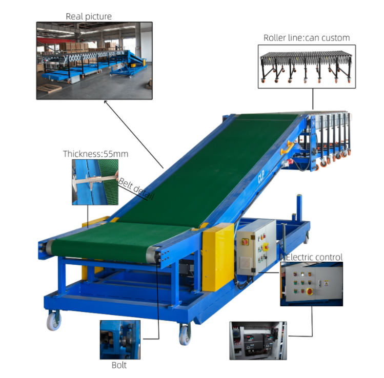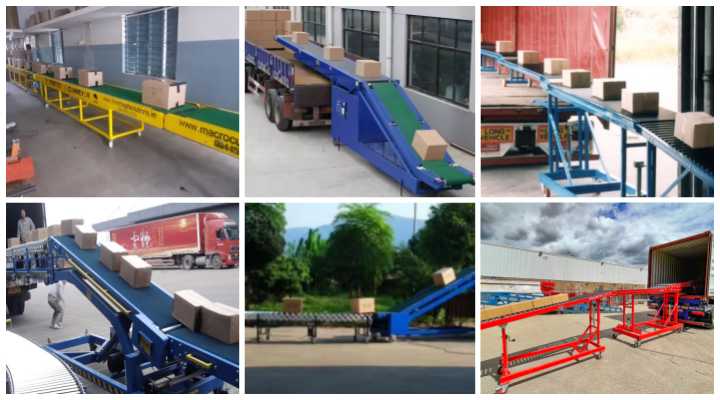 Retractable belt conveyors: retractable and can adjust the length as needed to adapt to trucks or loading and unloading areas of different lengths.